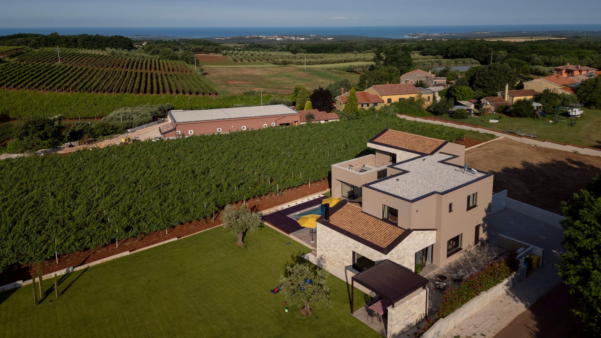 Villa Deneb is located just 15 km from Poreč, in the idyllic village of Mekiši near Kaštelir, which is home to only about twenty permanent residents. It belongs to the Kaštelir Labinci area and the Poreč Riviera region, situated near European centres and airports, and is excellently connected by the Istrian motorway. Mekiši near Kaštelir is just 7.3 km away from the highway, or an 11-minute pleasant drive.