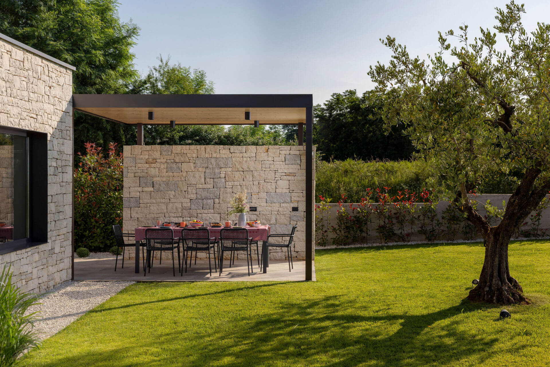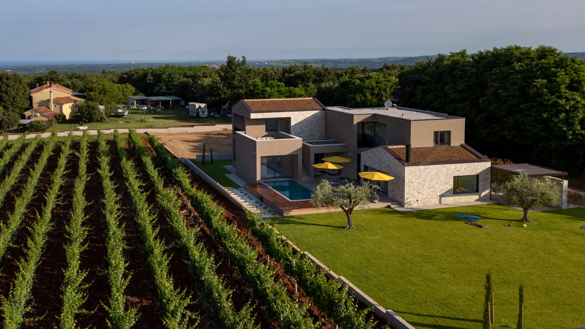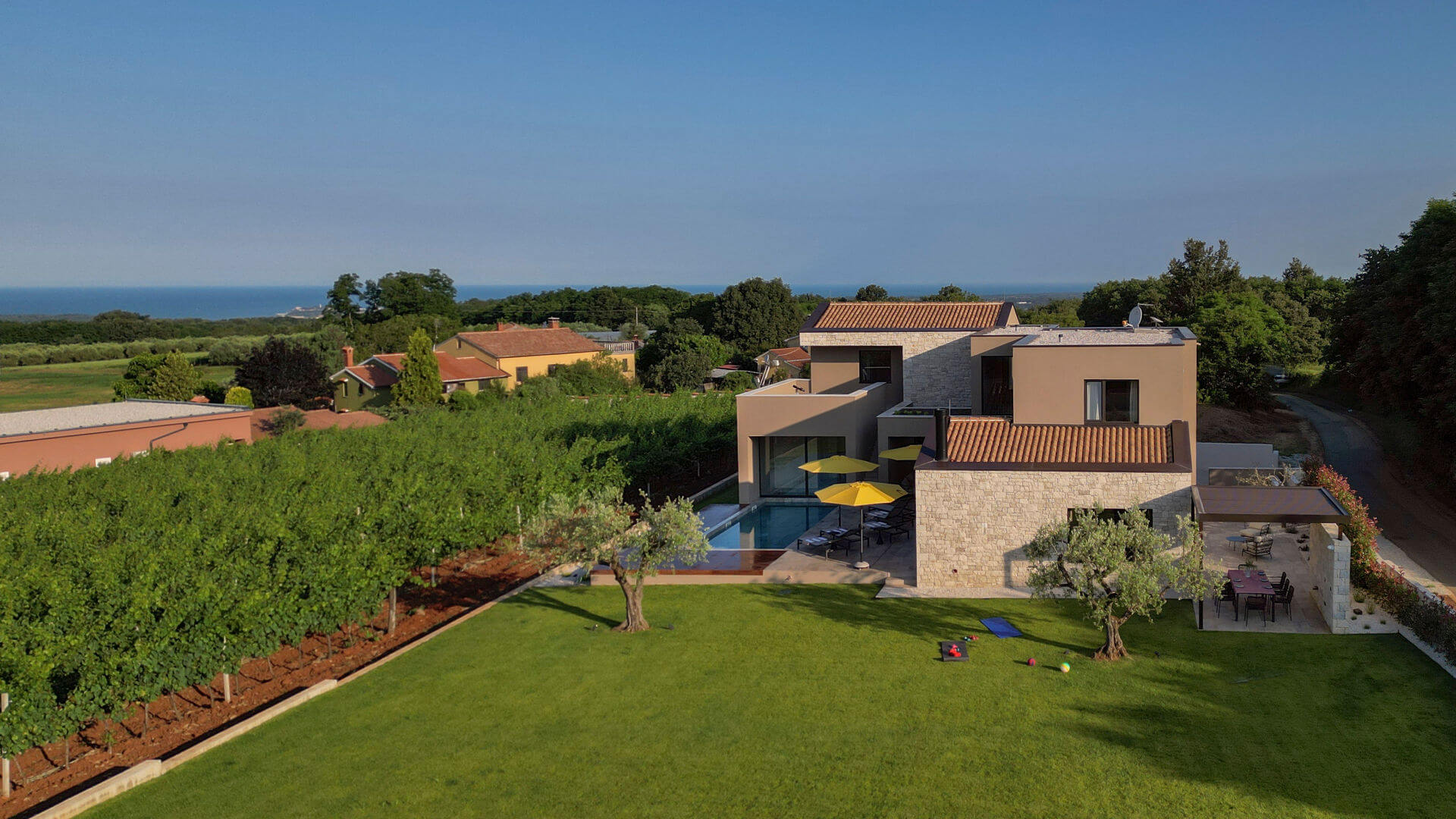 Villa Deneb was crafted by Istrian architects, interior designers, and local entrepreneurs with a desire to create a luxurious oasis of peace and beauty tailored for complete enjoyment in every corner. This irresistible villa, crafted with love, is surrounded by vineyards, olive groves, and enchanting Mediterranean vegetation. From the upper floor, it offers views of the Adriatic blue. It’s the perfect blend of contemporary architectural design with Istrian tradition, marrying modern and antique, peace and tranquillity.
